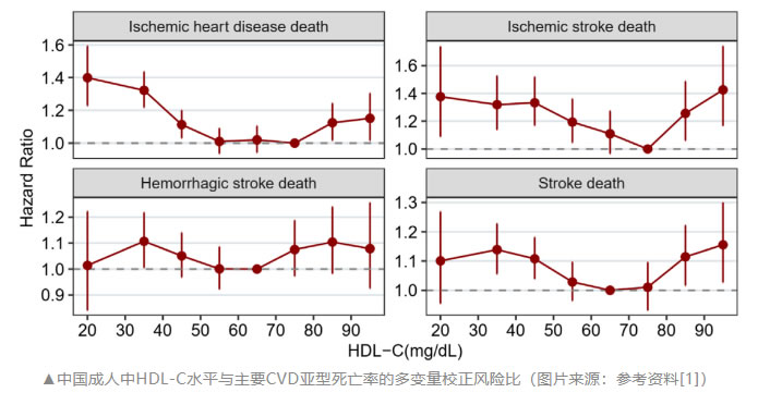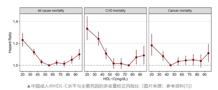結(jié)果顯示,低HDL-C和高HDL-C均與死亡風(fēng)險(xiǎn)增加相關(guān)。該研究推薦50 mg/dL~79 mg/dL作為中國(guó)成人HDL-C的最佳范圍。正確管理低HDL-C和高HDL-C,可給血脂異?;颊邘慝@益。論文指出:“該研究是第一個(gè)在近340萬中國(guó)成人中全面評(píng)估HDL-C與全因死亡率和病因特異性死亡率之間關(guān)系的研究”。